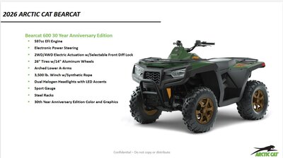 597cc EFI EngineElectronic Power Steering2WD/4WD Electric Alctuation w/Selectable Front Diff Lock26" Tires w/14" Aluminum WheelsArched Lower...